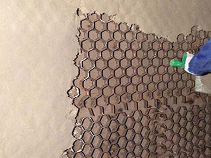 在內六角龜甲網上施工耐火材料時,一般采用涂抹、搗打施工,以下是一般的步驟和注意事項: