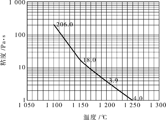 經過試驗,向試驗煤樣中加入當地沙漠中的沙子進行堿酸比例的調整。通過試驗可知,當向試驗煤樣中加入相當于煤灰分40%的沙子時,煤的粘溫特性得到了改善,灰熔點同時也得到了降低,粘溫特性如圖1。